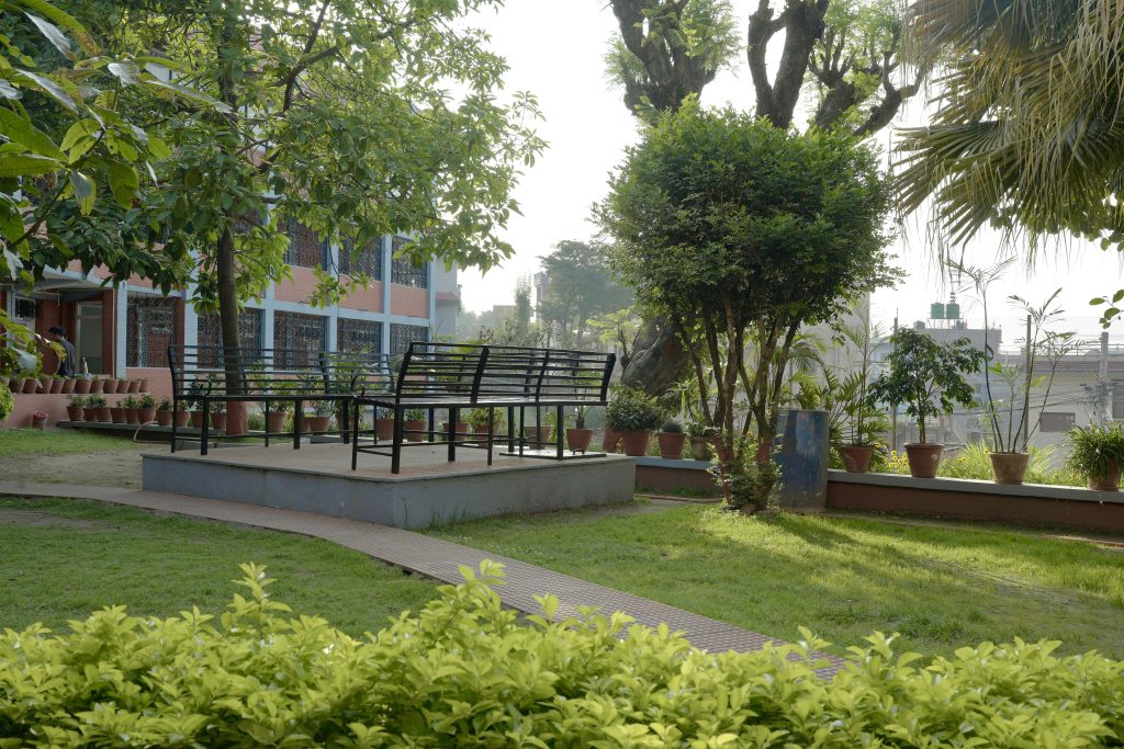 The campus is equipped with fire extinguishers and first-aid kits at strategic points. An emergency assembly area has been designated for all members of the community. Regular drills are conducted to prepare students and staff for fire, earthquake, and other emergencies.